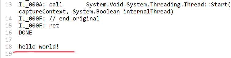 打开之后就可以看到 patch Thread.Start 方法的IL 细节了。