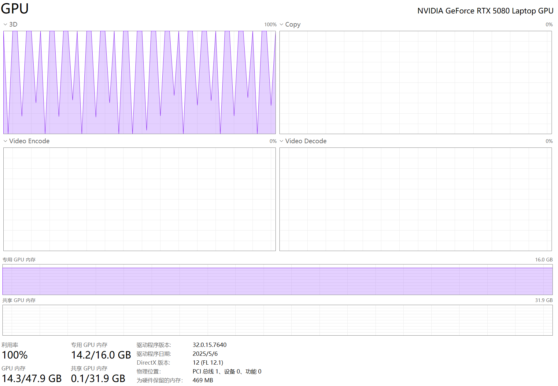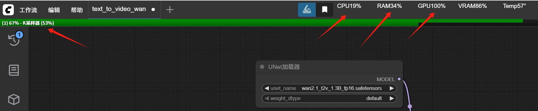 注意看,左上角会显示进度,中间顶部会显示CPU,内存,GPU的使用率