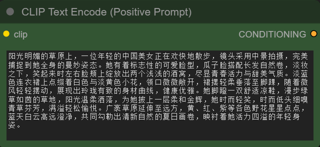 阳光明媚的草原上,一位年轻的中国美女正在欢快地散步,镜头采用中景拍摄,完美捕捉到她全身的曼妙姿态。她有着标志性的可爱脸型,瓜子脸搭配长发自然卷,淡妆之下,笑起来时左右脸颊上绽放出两个浅浅的酒窝,尽显青春活力与甜美气质。淡蓝色连衣裙上点缀着白色与淡黄色小花,领口微微敞开,裙摆轻柔垂落至脚踝,随着微风轻轻摆动,展现出玲珑有致的身材曲线,健康优雅。她脚蹬一双舒适凉鞋,漫步绿草如茵的草地,阳光温柔洒落,为她披上一层柔和金辉,她时而轻笑,时而低头细嗅青草芬芳,满溢轻松愉悦。广袤草原延伸至远方,黄、红、紫等各色野花星星点点,蓝天白云高远澄净,共同勾勒出清新自然的夏日画卷,映衬着她活力四溢的年轻身姿。