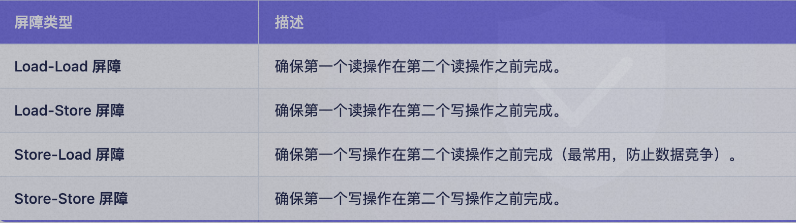 理解这些屏障机制可以帮助开发者编写出正确且高效的多线程程序。它通过禁止指令重排序和确保变量的可见性,保障了多线程环境下的数据一致性。