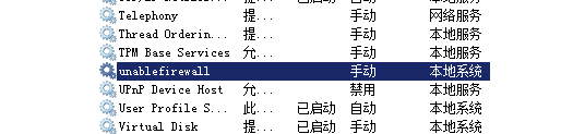 # 使用sc命令在远程计算机上创建一个名为unablefirewall 的服务