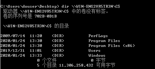 dir \\WIN-ENS2VR5TR3N\C$ 访问域控C盘下的文件