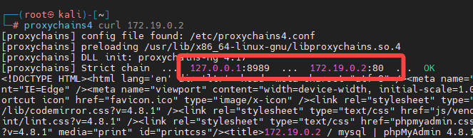 或者curl一下docker容器:172.19.0.2 看代理链是否构造成功: