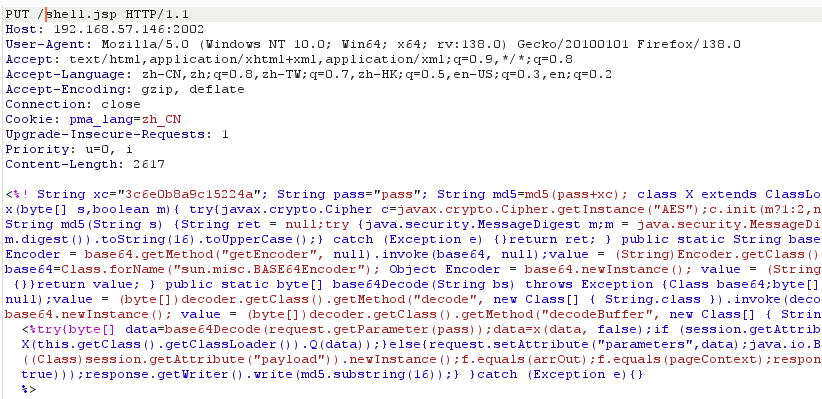 就能成功上传了,状态码显示为204(服务器成功处理请求)再使用哥斯拉连接