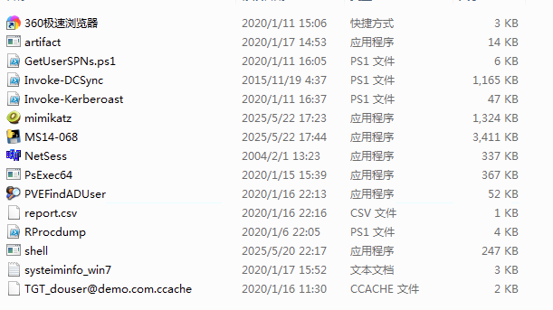 发现里面能用的东西相当多,但按理来说一台要打的机器是不会有这么多POC在上面的,比如这里的MS14-068 就应该是出题人给我们的提示。