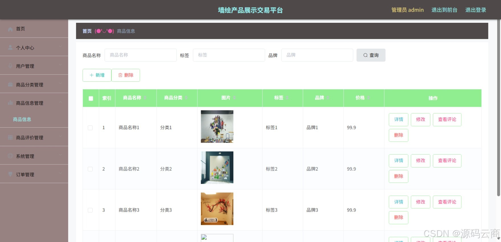 - 管理商品的分类信息,能够便于用户根据自己的需求查找不同类型的墙绘产品。