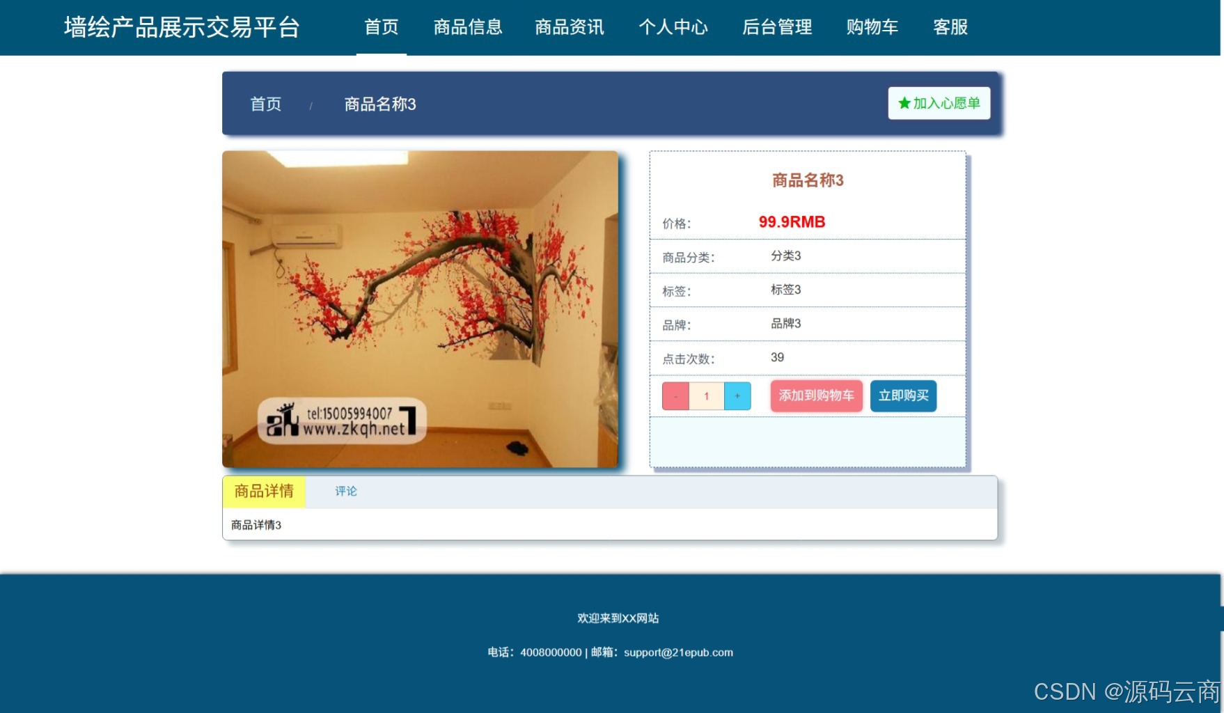 用户可以浏览平台上各类墙绘商品,查看商品的详细信息。