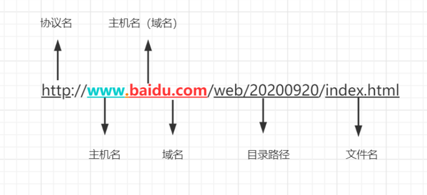"https" 表示协议,"www.runoob.com" 是主机名,"80"(默认情况下省略)是端口号,"/html/html - forms.html" 为路径名和文件名,用于定位具体的资源。