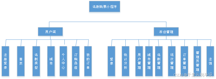我们在设计系统的体系时,应站在客户的立场上思考可能发生的事情,以使做出的产品可以满足用户的要求。同时也应为系统将来功能变更、拓展留下余地。此章节重点介绍此话剧购票小程序的设计目的、系统功能设计以及对应的数据结构规划。