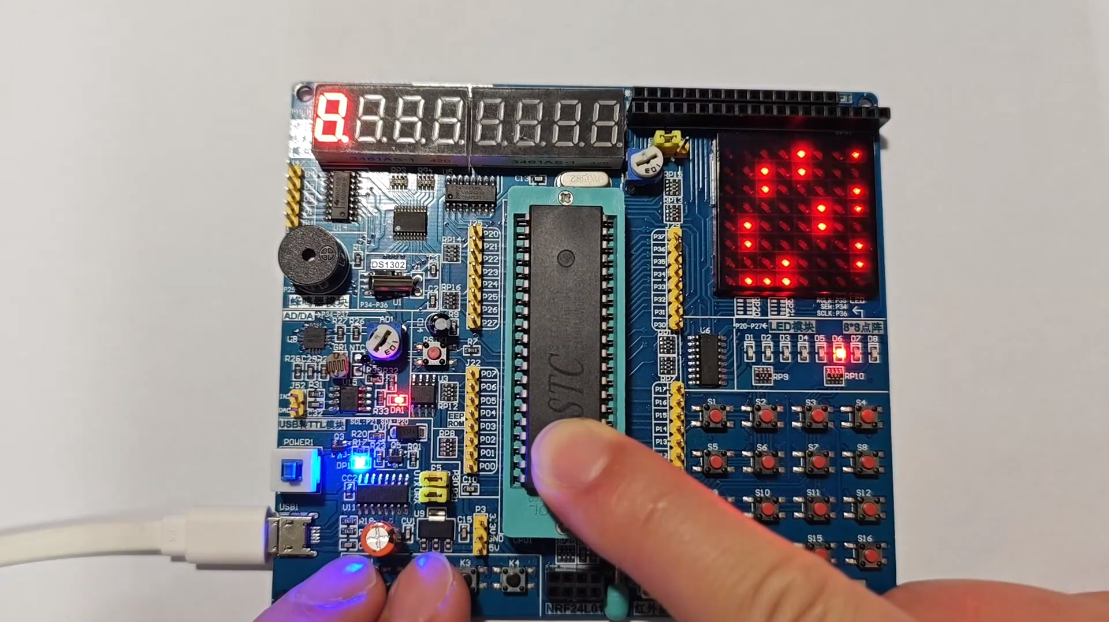 跟8位数码管(同样有64个LED)一样,用扫描的方法来驱动显示,每隔1ms切换下一列显示。本代码中专门用定时器1来扫描点阵屏,并设置定时器1的优先级比定时器0的高。