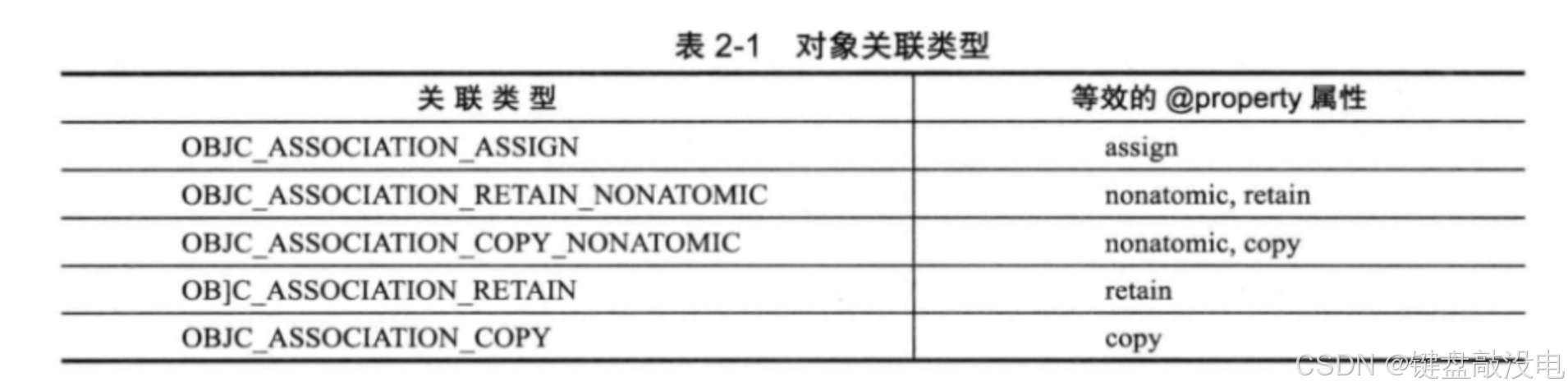 nonatomic、atomic、assign等,下面展示一下所有关联对象的属性类型: