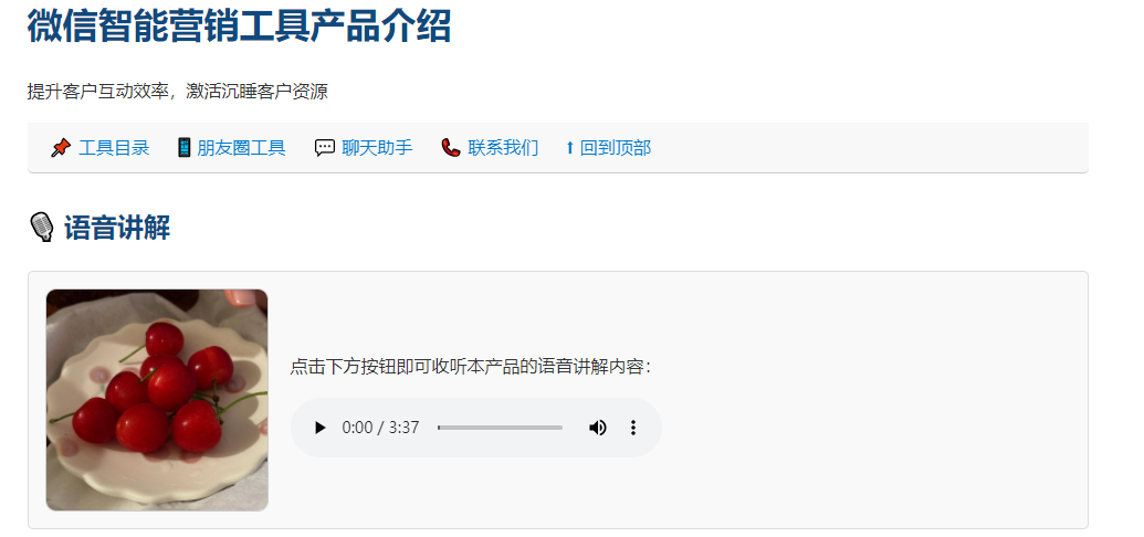 <title>微信智能营销工具产品介绍 - 音频演示</title>