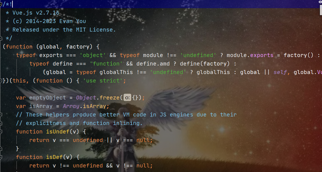 注意看引入的Vue环境是需要在线引入的,因此我们可以进行离线引入,即访问Vue环境的网址,将Vue环境所需要的资源复制到我们自定义的js文件中,再在HTML文档中引入我们定义的js文件即可