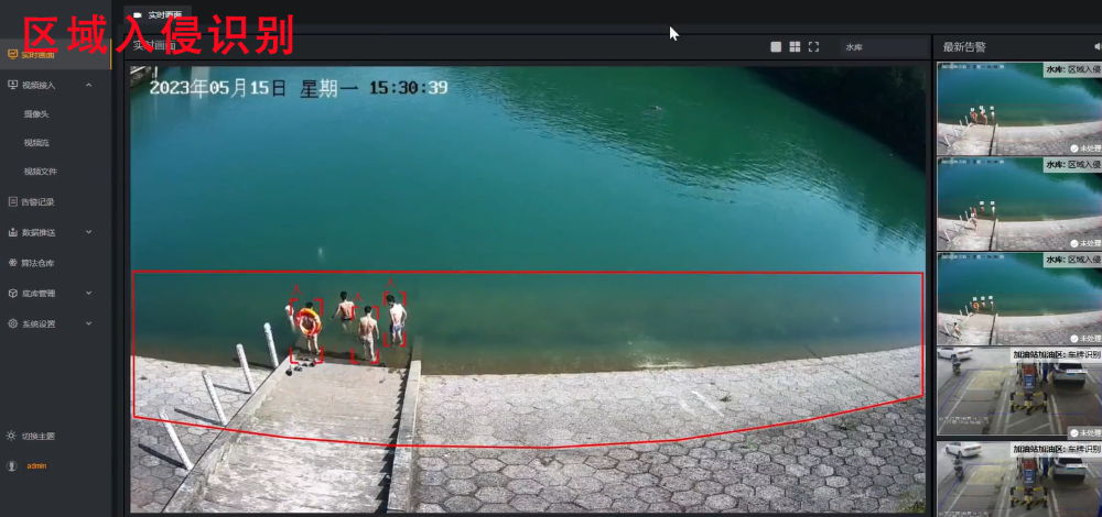 - 区域入侵检测算法 :在危化品仓库、高压反应釜等禁入区域划定电子围栏,实时监测人员闯入行为。