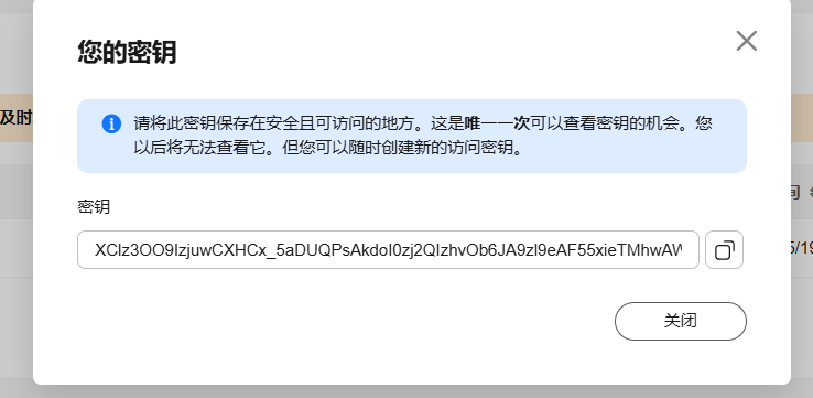 API key仅会在创建时显示一次,所以当页面显示 API key 时,需及时进行保存。