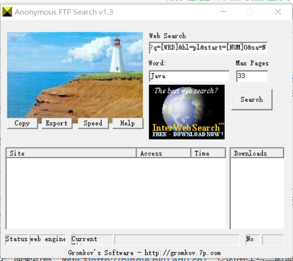 AnonymousFTPSearch,它的主要功能是搜索包含指定关键字的匿名FTP站点,用户可以通过输入关键字,进行搜索。