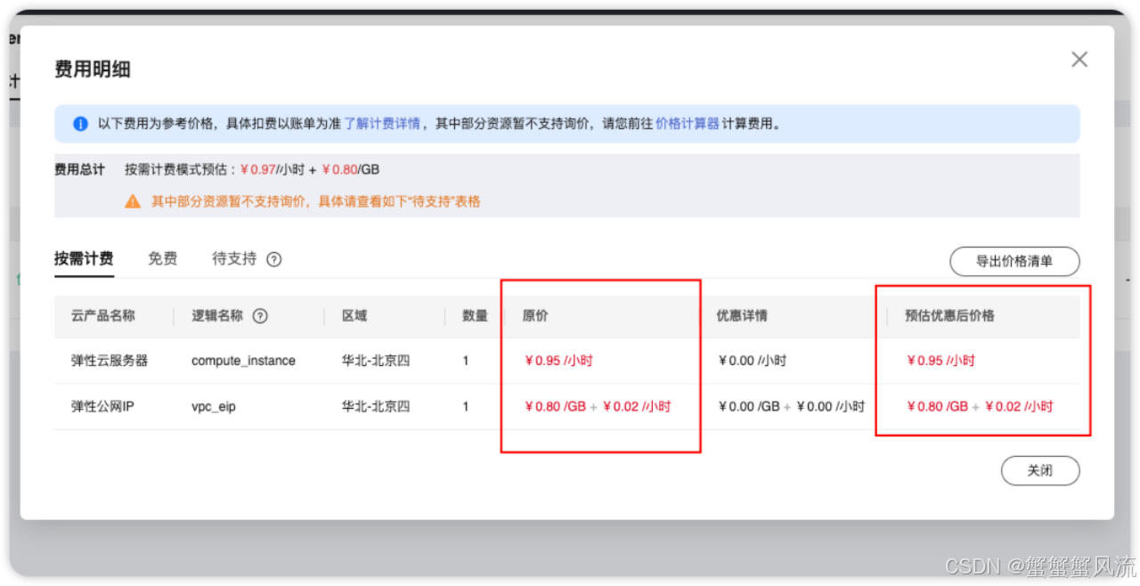 在部署之前,你可以通过点击"参考费用明细"确认每项资源的计费方式: