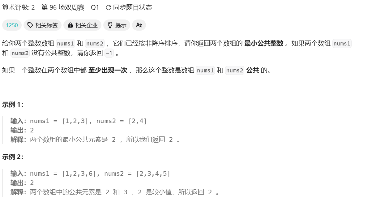 [2540. 最小公共值](#2540. 最小公共值)