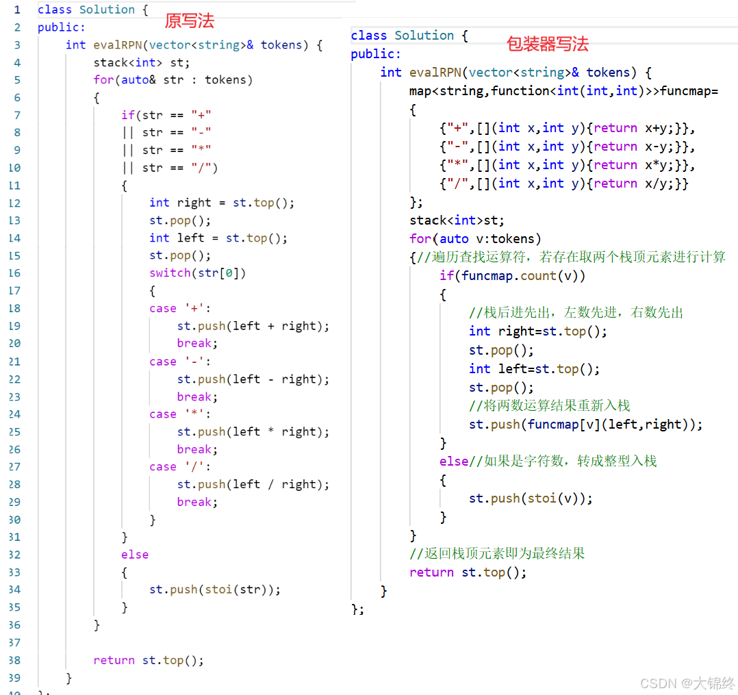 还记得之前在学习STL容器时做过的逆波兰表达式求值的题目,运包装器更简洁效。