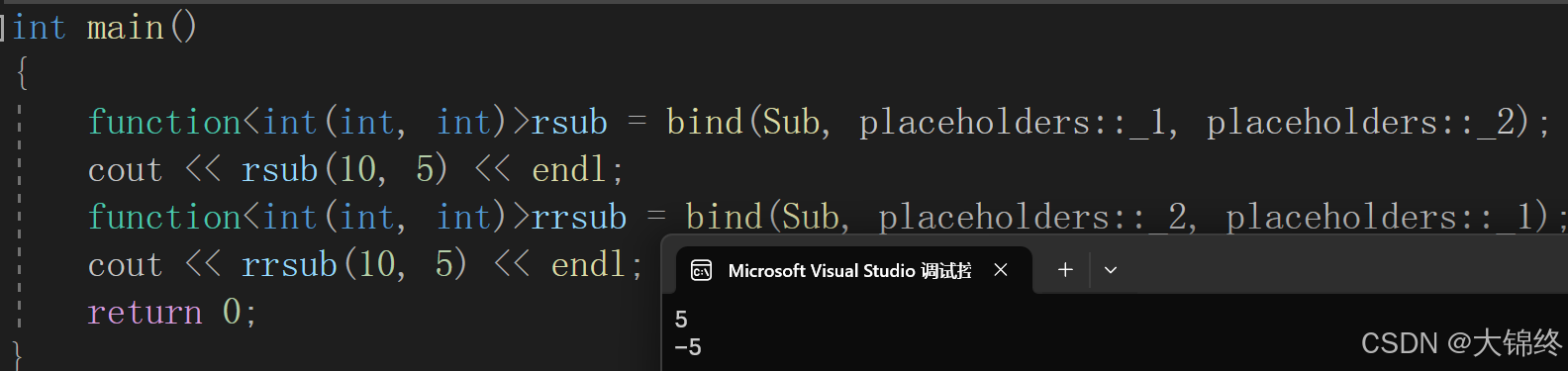 1.std::placeholders 是一个命名空间,它定义了一系列占位符,用于指定绑定后的函数调用时参数的位置。_N:表示绑定后的函数调用时的第 N 个参数。