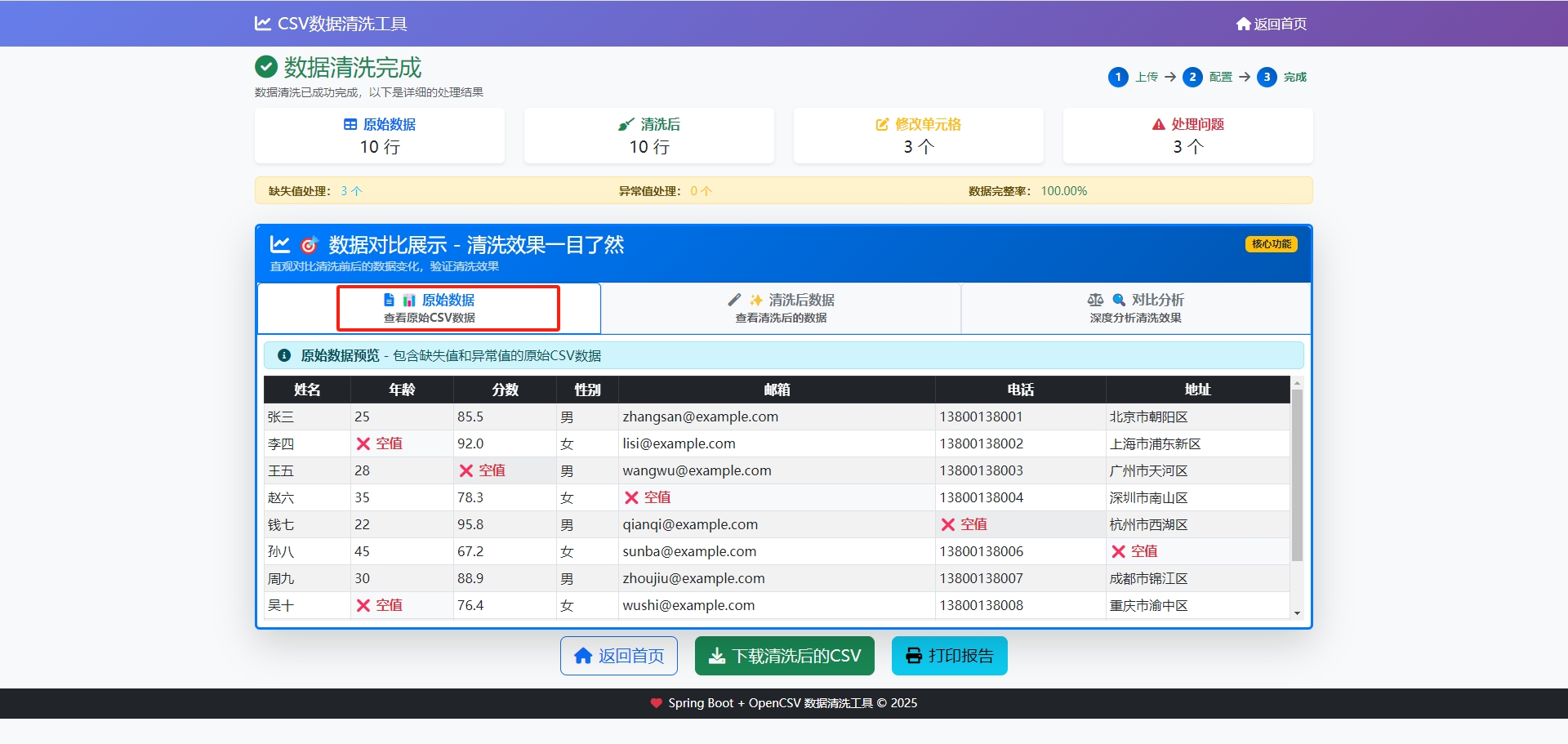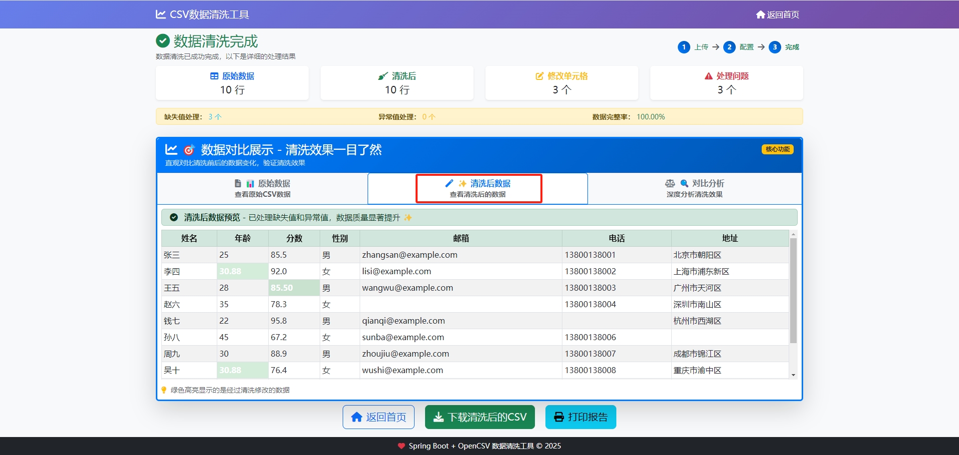 Spring Boot + OpenCSV 数据清洗工具 © 2025