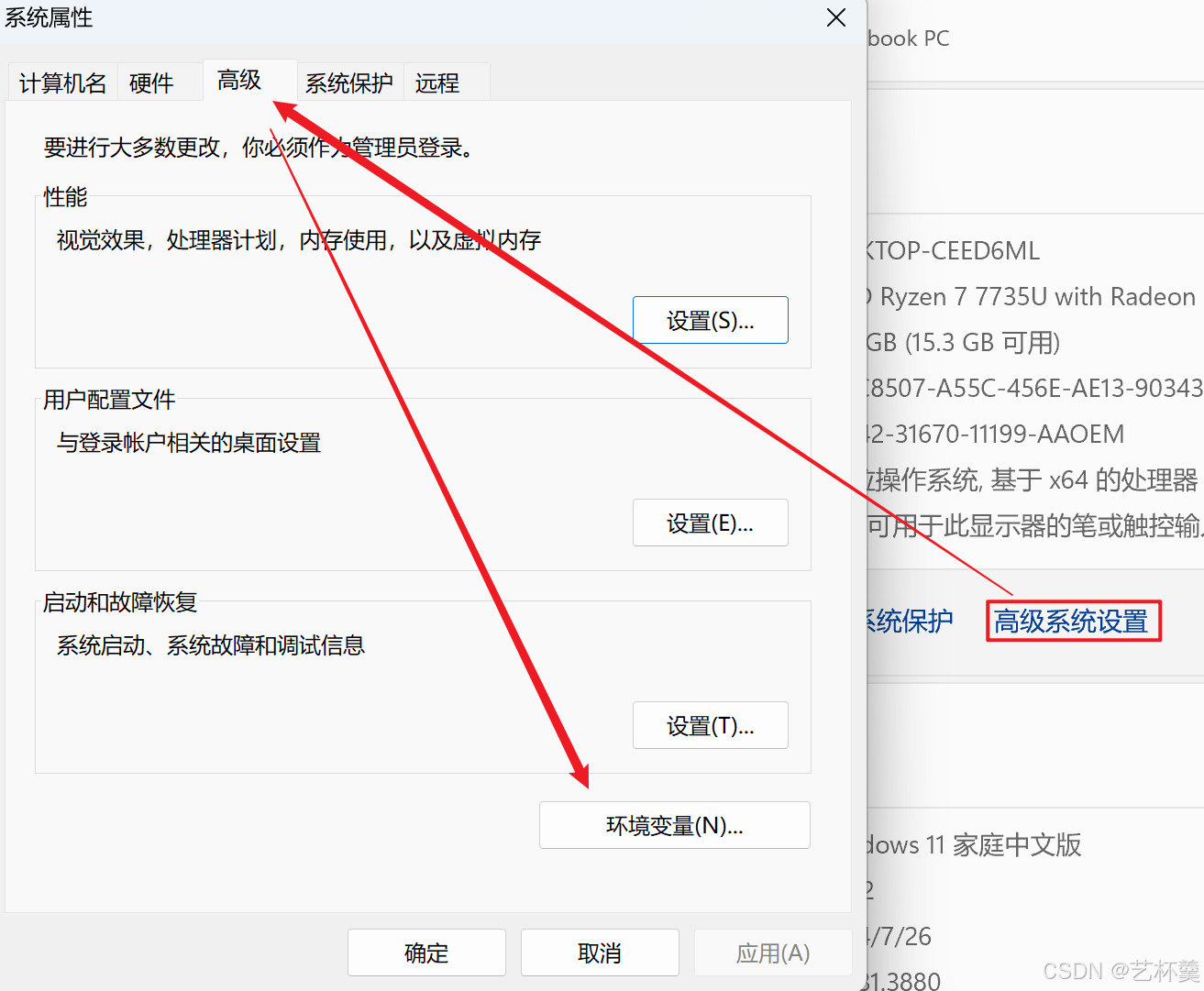1.2. "高级系统设置" ---> "高级" ---> "环境变量"