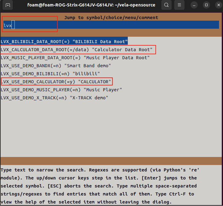 - 配置LVX_USE_DEMO_CALCULATOR 为 yes