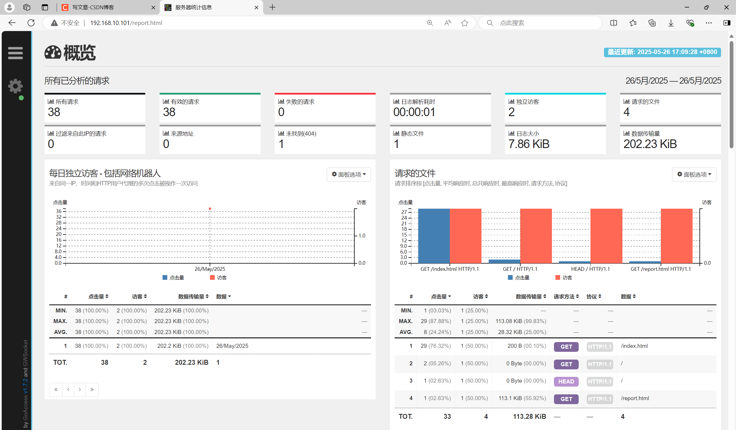 统计每个虚拟主机(server 块)的请求量(QPS)、带宽使用、响应时间、连接数 等关键指标。支持按状态码(如 2xx、4xx、5xx)分类统计请求
