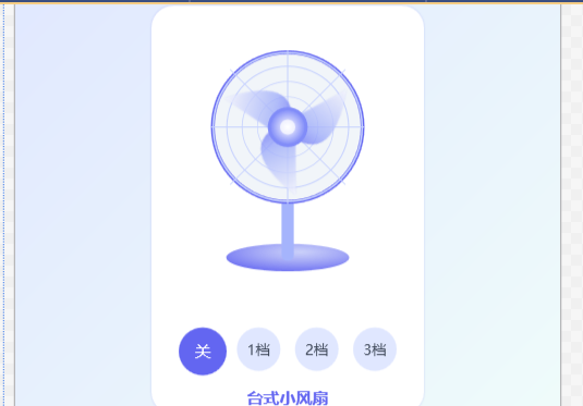 在完成上述代码后,点击 运行 按钮,你将看到一个现代化的风扇界面。在界面上,点击控制按钮时,风扇叶片将旋转,并根据按钮选择的风速进行调整。