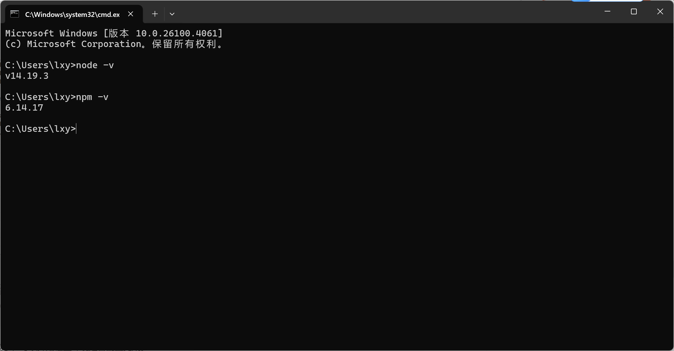 【注意:此时是打开CMD窗口,并非在C:\Program Files\nodejs目录下执行node.exe】