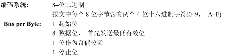 - 帧内字符间隔 (Inter-Character Timeout)必须 ≤ 1.5个字符时间,否则视为帧结束。