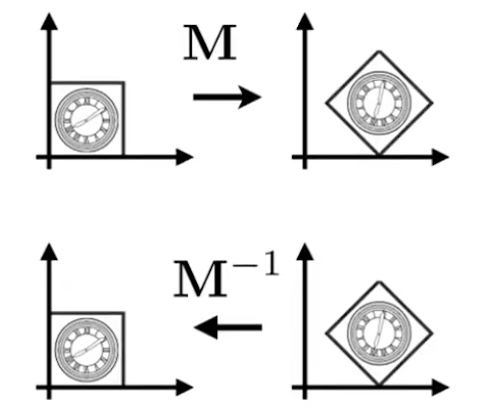逆变换刚好对应矩阵中:一个矩阵 x 该矩阵的逆矩阵 = 单位矩阵(什么都没做)