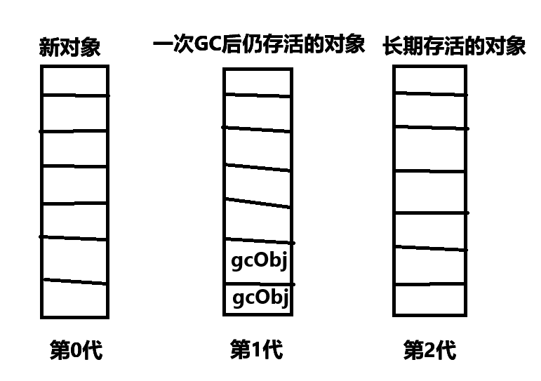 将对象分不同代,以分成三代为例