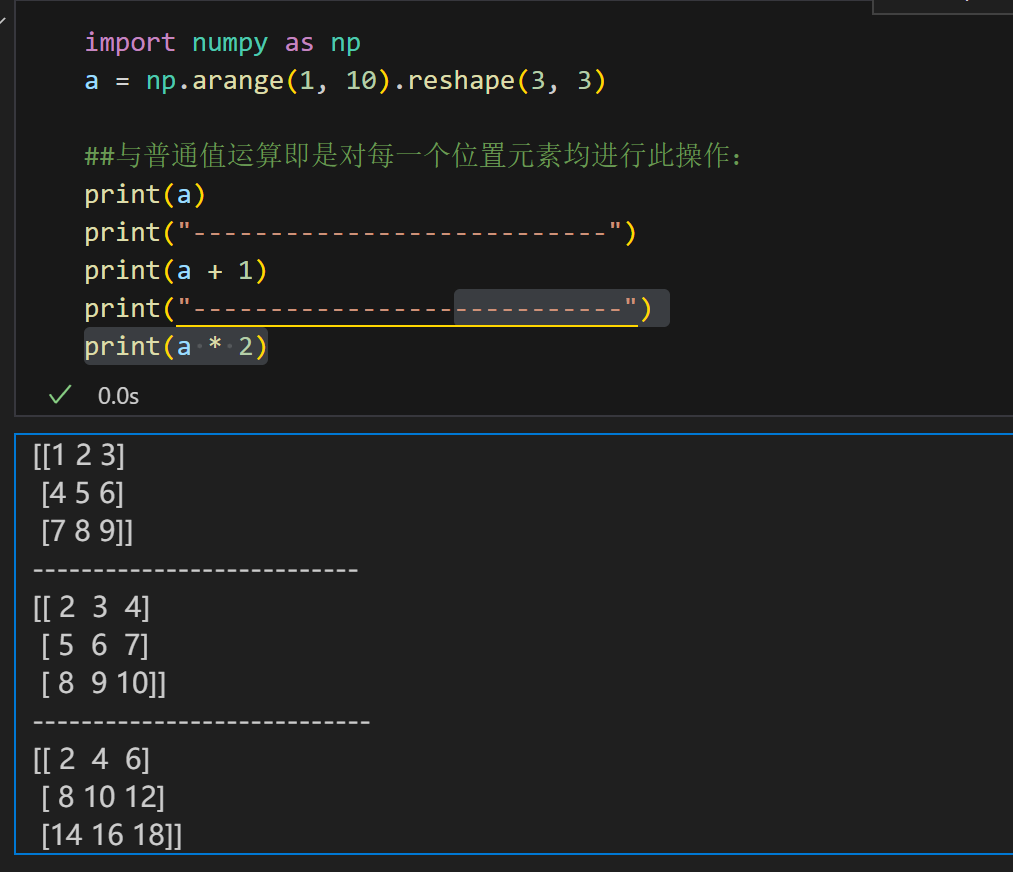 数组和普通值之间的运算: