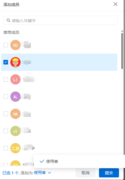 【指定人员可见】,能给的权限也仅仅只是【使用者】。