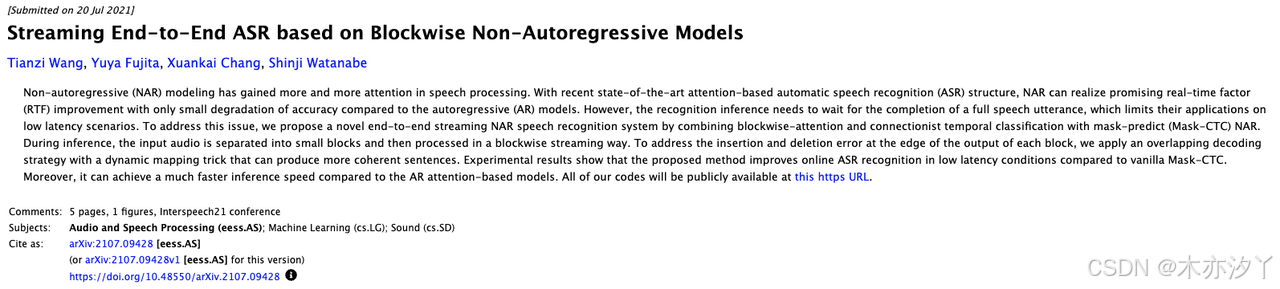 关键索引词:非自回归语音识别,流式 ASR,分块注意力,Mask-CTC
