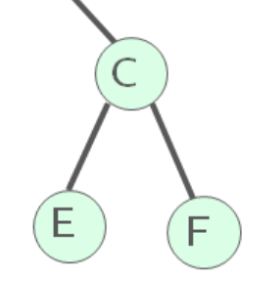 C的左子树遍历完,访问C结点,得到D->G->B->A->E->C,然后进入C的右子树:
