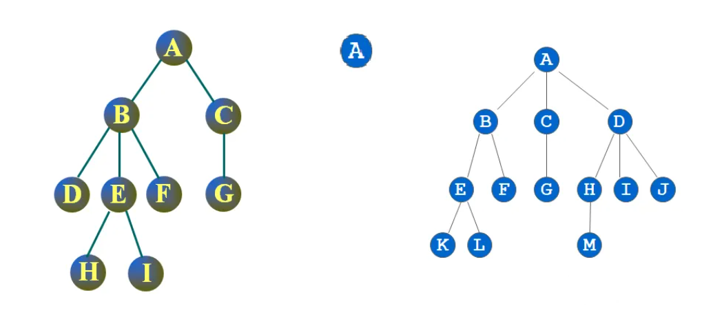 数据结构中的树与现实的树类似,下图中的三种都是数据结构中的树。