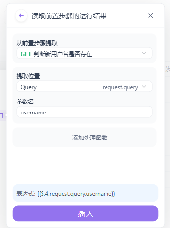 - 在实际使用中,还可以通过控制条件对流程进行控制,如果新用户名检测不存在,则用该用户名进行注册用户信息,如果返回成功,进行用户登录接口测试