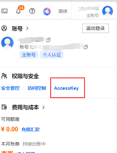 点击头像,找到AccessKey管理