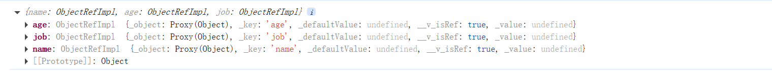 但是toRefs却只能取到对象里面的每个第一层,所以访问后面的深层次对象还是需要手动进行遍历,但是访问第一层就已经很方便了!
