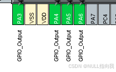 开发板连接了几个灯,PA3\PA4\PA5\PA6,且低电平点亮,如下配置: