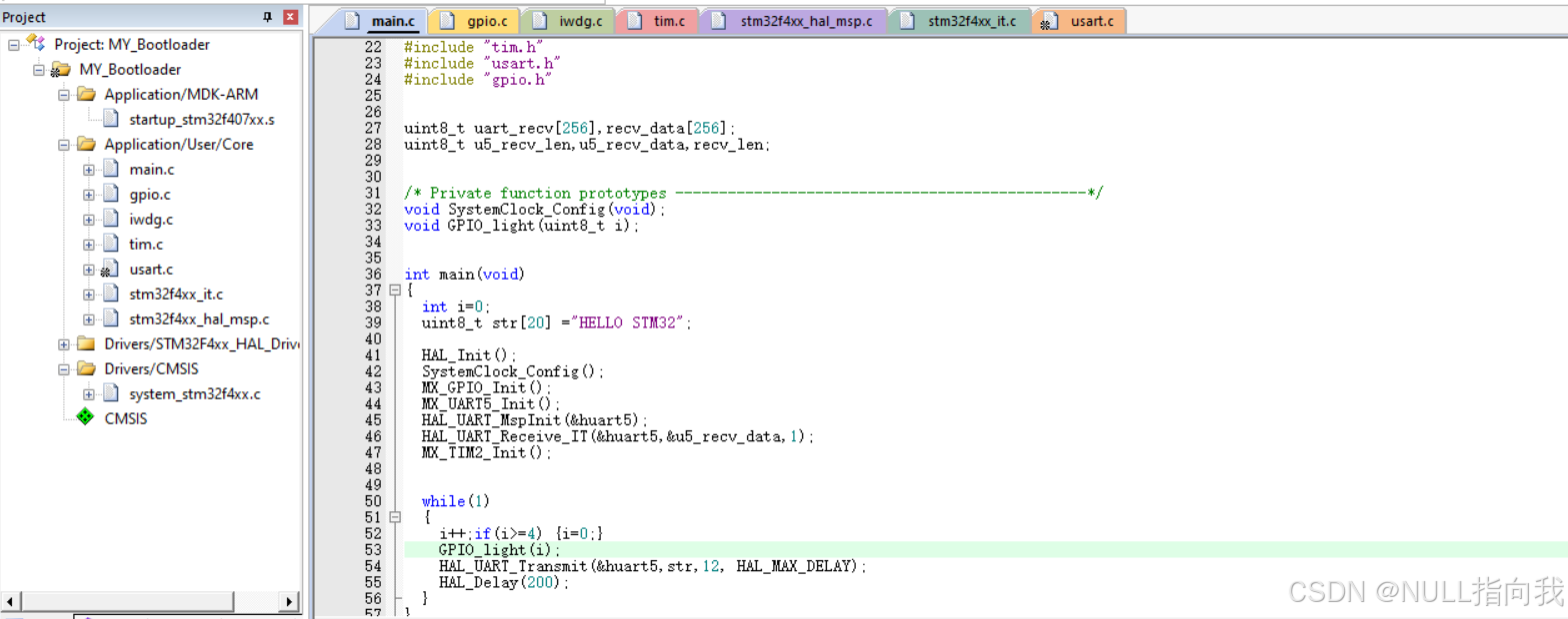 额外自己增加的应用层代码需要放在它生成工程的/*USER CODE BEGIN*/之间