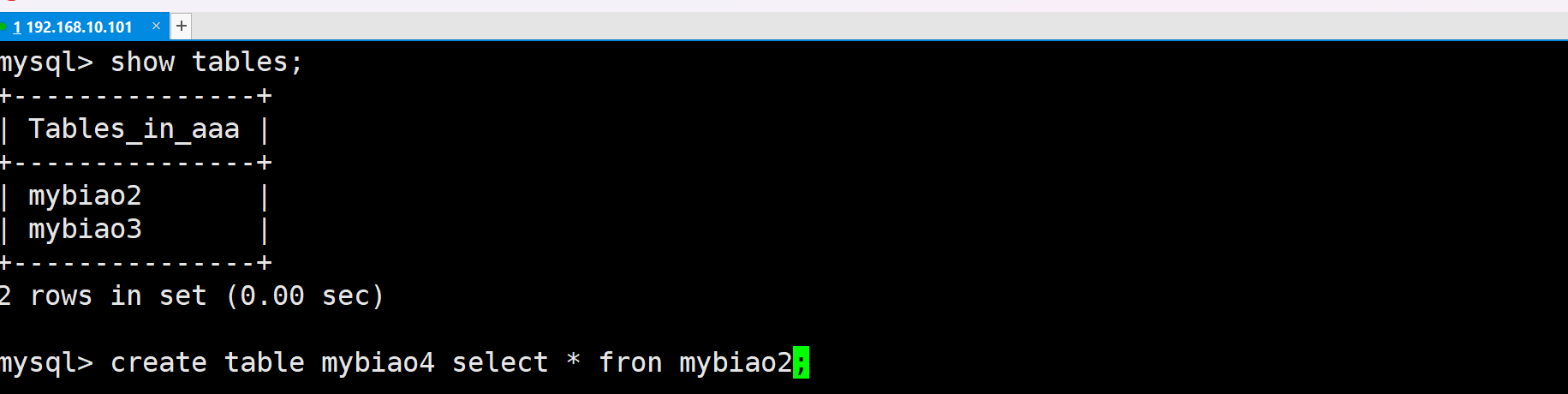 | mysql>show tables; |