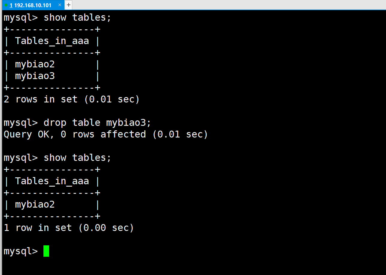 删除已创建的数据库aaa,并查看已被删除