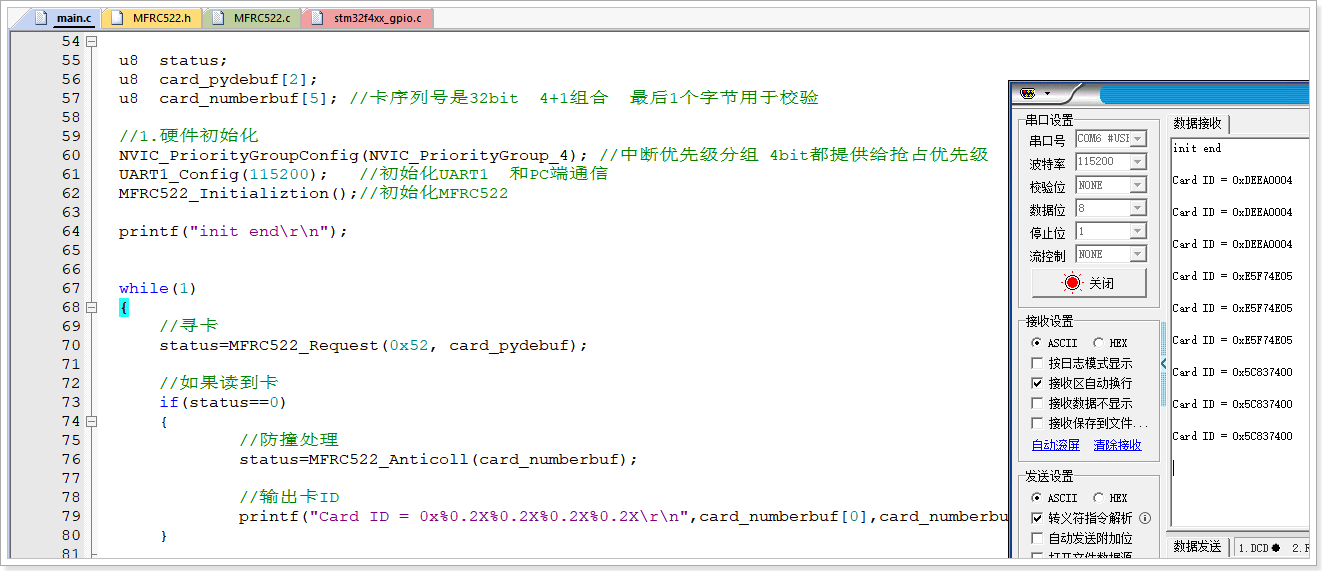 作业:根据SPI的时序完成RFID模块的程序移植,并实现卡的选卡、读卡、写卡的相关功能。