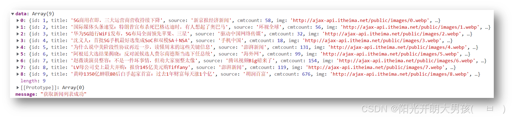 新闻列表数据 URL 网址:http://hmajax.itheima.net/api/news