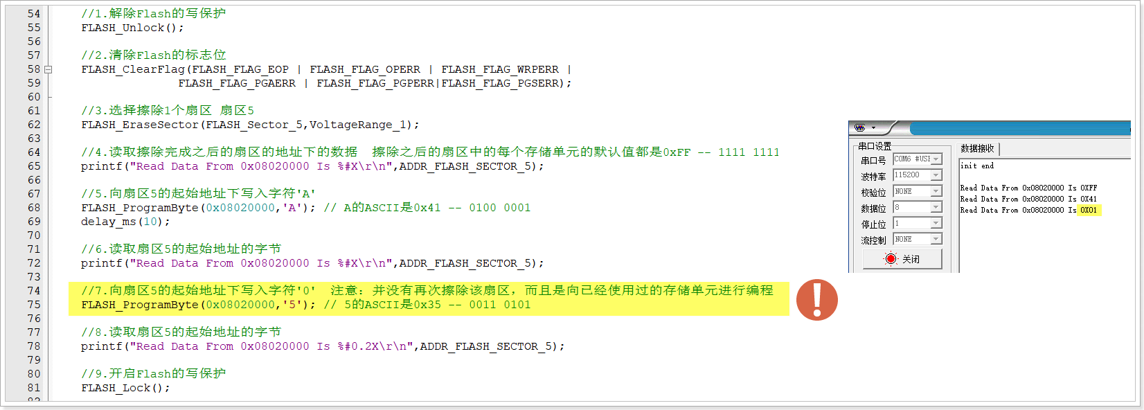 如果用户打算对Flash空间进行编程或者擦除,对应的流程可以参考帮助手册以及文件注释