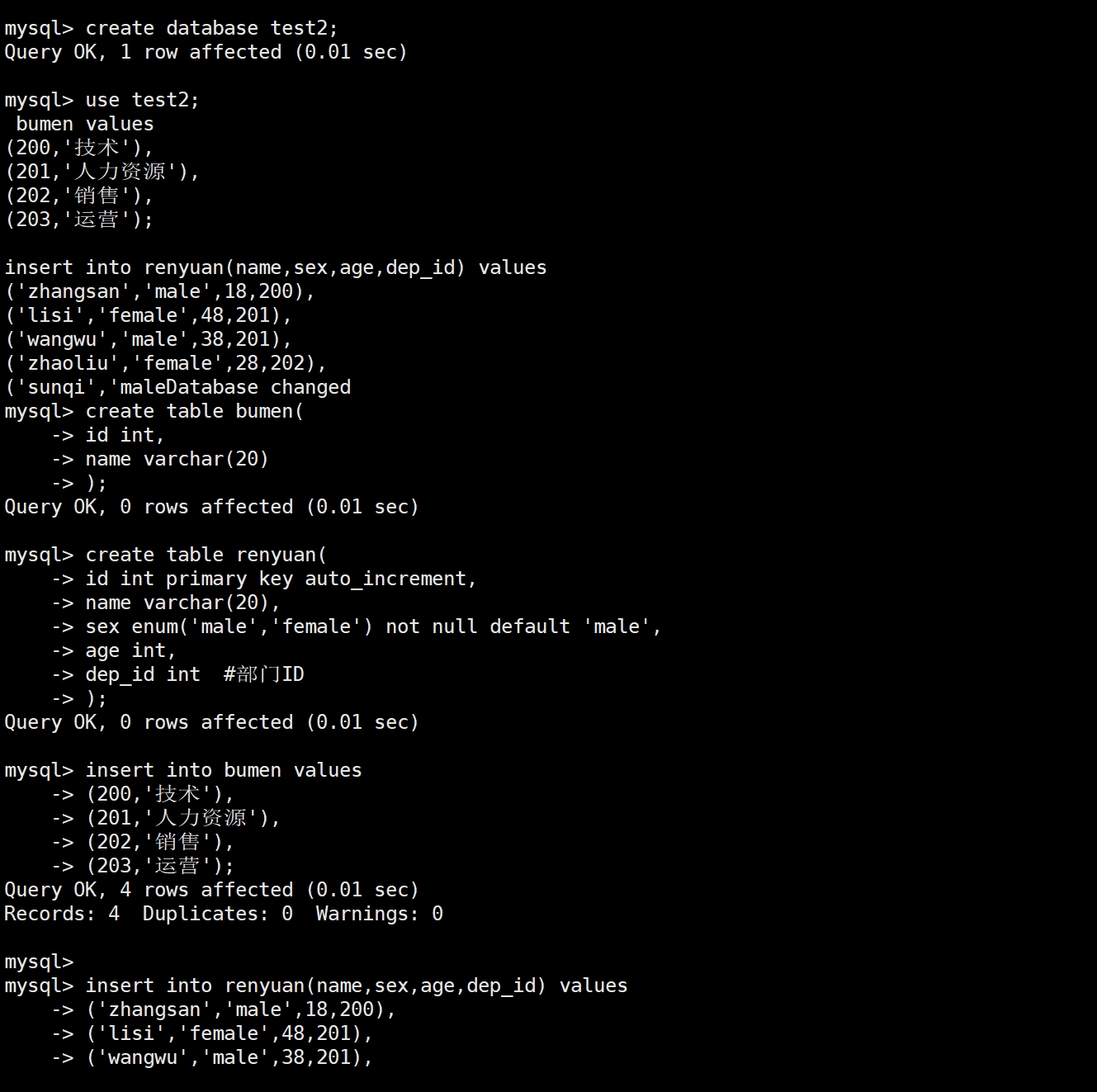 使用SHOW TABLES查看当前所在的数据库中包含的表,在操作前,需要使用USE语句切换到所使用的数据库。