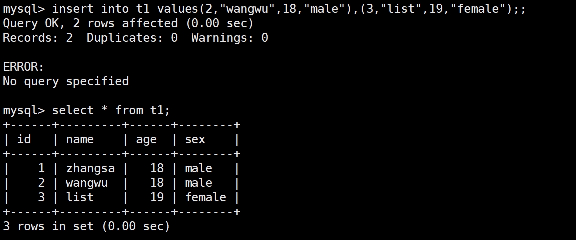 可以通过DML使用INSERT用来插入,DELETE删除和UPDATE更新数据库中的数据,使用SELECT查询数据。